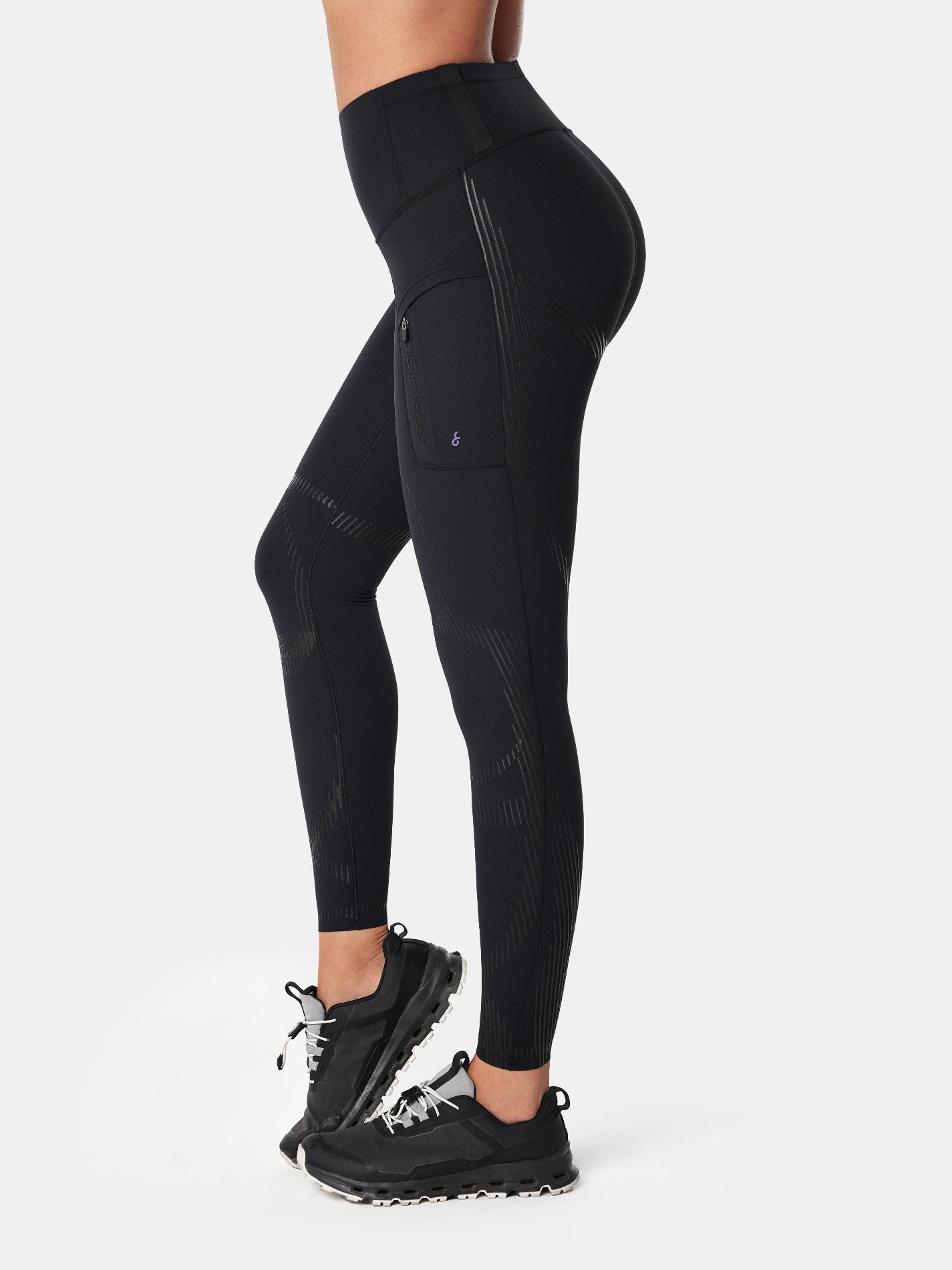 Seamless design, targeted knee support, and functional pockets for comfort, support, and convenience.
